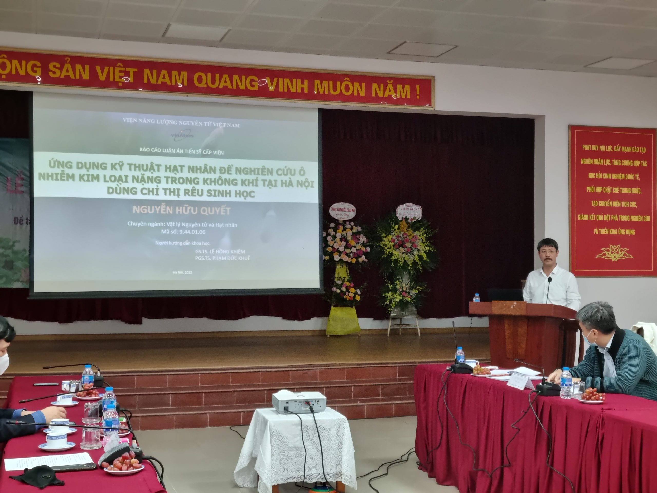 Ngày 26/01/2022, Trung tâm Đào tạo hạt nhân đã long trọng tổ chức Lễ bảo vệ luận án tiến sĩ cấp Viện cho nghiên cứu sinh Nguyễn Hữu Quyết, chuyên ngành Vật lý nguyên tử và hạt nhân (mã số 9.44.01.06), đề tài luận án “Ứng dụng kỹ thuật hạt nhân để nghiên cứu ô nhiễm kim loại nặng trong không khí tại Hà Nội dùng chỉ thị rêu sinh học” với sự hướng dẫn khoa học của GS.TS. Lê Hồng Khiêm và PGS.TS. Phạm Đức Khuê.