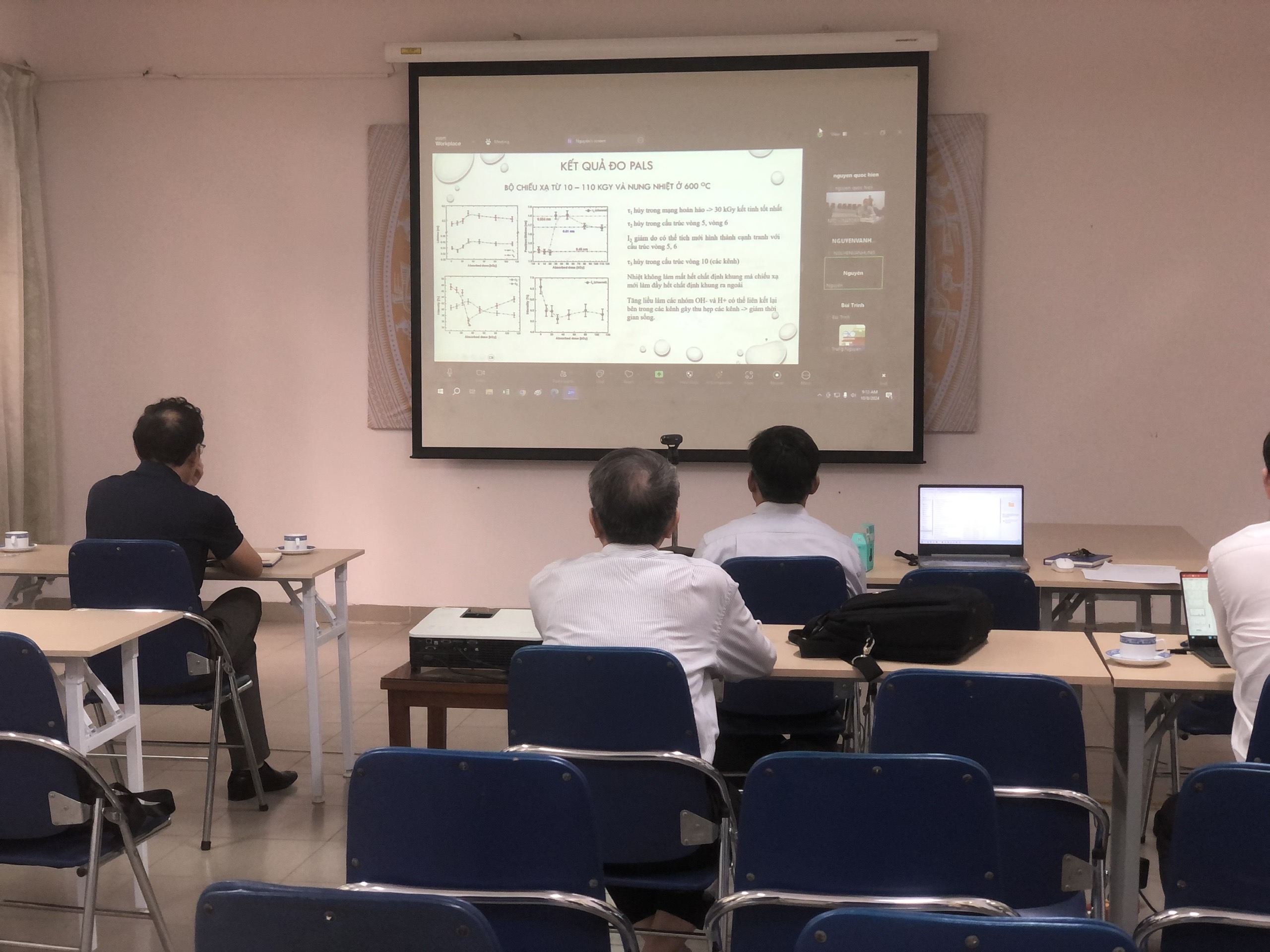 Thực hiện công tác đánh giá kết quả học tập của nghiên cứu sinh (NCS) đang theo học chương trình tiến sĩ theo bốn chuyên ngành (gồm Vật lý lý thuyết và Vật lý toán; Vật lý nguyên tử và hạt nhân; Hóa phân tích và Hóa vô cơ) tại Viện Năng lượng nguyên tử Việt Nam (Viện NLNTVN), Trung tâm Đào tạo hạt nhân đã tổ chức hội thảo chuyên đề của các nghiên cứu sinh năm 2024 vào ngày 08 tháng 10 năm 2024 với 07 báo cáo của các nghiên cứu sinh, cùng trên 40 thầy cô giảng viên và khách mời, gồm 04 Trưởng ban các tiểu ban, các thầy cô, nghiên cứu sinh và khách mời tham dự trực tiếp tại Trung tâm Đào tạo hạt nhân và tham dự trực tuyến.