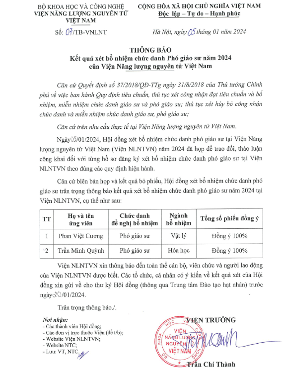 Thực hiện công tác đánh giá kết quả học tập của nghiên cứu sinh (NCS) đang theo học chương trình tiến sĩ theo bốn chuyên ngành (gồm Vật lý lý thuyết và Vật lý toán; Vật lý nguyên tử và hạt nhân; Hóa phân tích và Hóa vô cơ) tại Viện Năng lượng nguyên tử… Xem thêm »